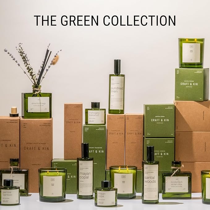 - CRAFT & KIN GREEN COLLECTION: We believe home is where we should feel as relaxed, calm, and refreshed as we do when walking in nature. This inspired our green collection with natural soy wax candles, classic reed diffusers, reed diffusers with flowers, and room sprays.