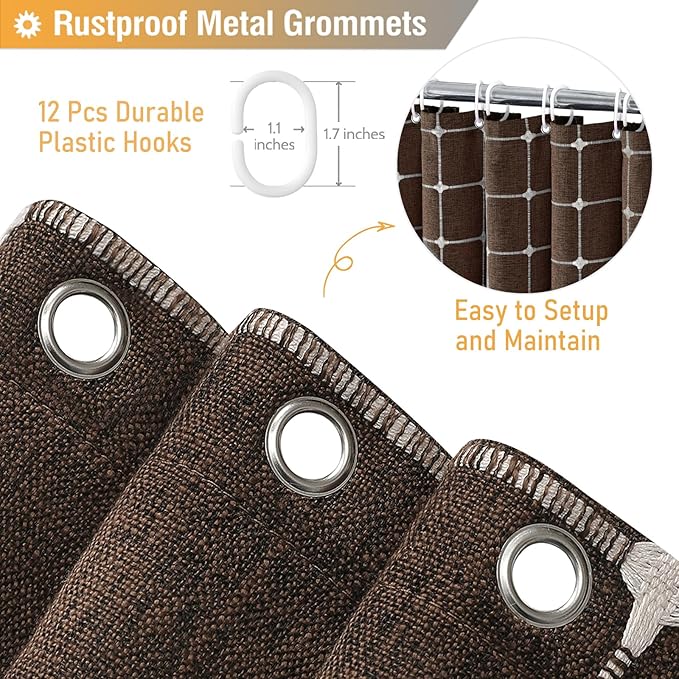 - 🛁【Dimensions】: W72xH72 inches(The tassel length is not included); ❤️The tassel brings 1.4 inches of additional length❤️; Package includes 1 brown shower curtain and ★12 Plastic Hooks★; Various sizes shower curtains meet most bathtubs and shower stalls need. This farmhouse shower curtain is ideal for various settings, including apartments, hotels, spas, RVs, dorms, schools, athletic clubs, gyms, and more. It can be used anywhere a shower curtain is needed.