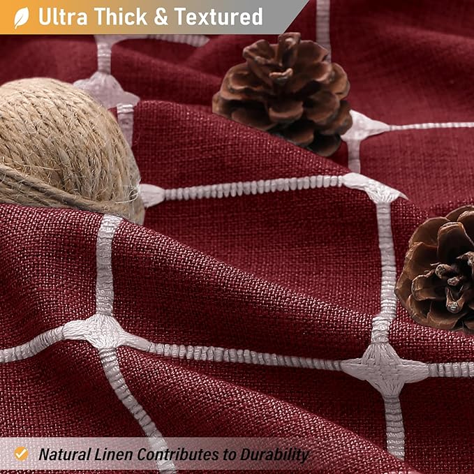 - 🛁【Dimensions】: W72xH72 inches(The tassel length is not included); ❤️The tassel brings 1.4 inches of additional length❤️; Package includes 1 burgundy shower curtain and ★12 Plastic Hooks★; Various sizes shower curtains meet most bathtubs and shower stalls need. This farmhouse shower curtain is ideal for various settings, including apartments, hotels, spas, RVs, dorms, schools, athletic clubs, gyms, and more. It can be used anywhere a shower curtain is needed.