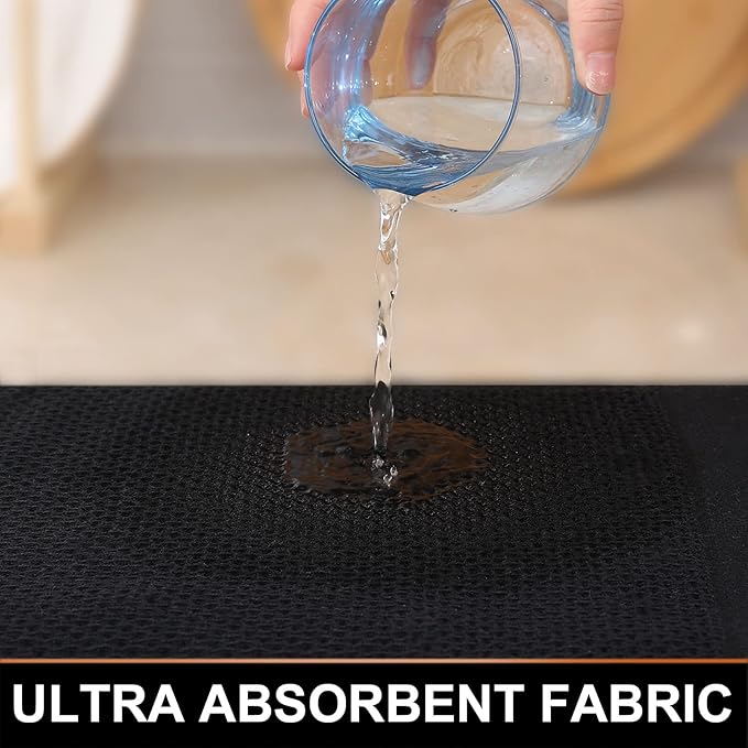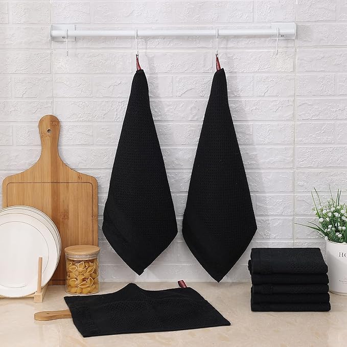 Homaxy 100% Cotton Dish Cloths, 12 Pack - 12 x 12 Inches, Waffle Weave Super Soft and Absorbent Dish Towels Quick Drying Dishcloths, Black