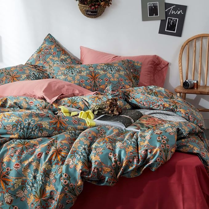 mixinni Vintage Floral Duvet Cover Twin XL Boho Bedding Soft Cotton Flower Pattern Bedding Set with Zipper Ties Perfect for Girls,Ultra Soft, Breathable, Comfortable(3pcs, Twin XL Size)