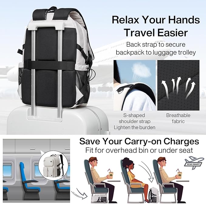- 【OVERALL DIMENSION】 The backpack external dimensions is 11.02 x 6.69 x 16.29 inch. A luggage strap in the back which can trap the suitcase telescopic handle, so that you can free your shoulders and hands when travel.
