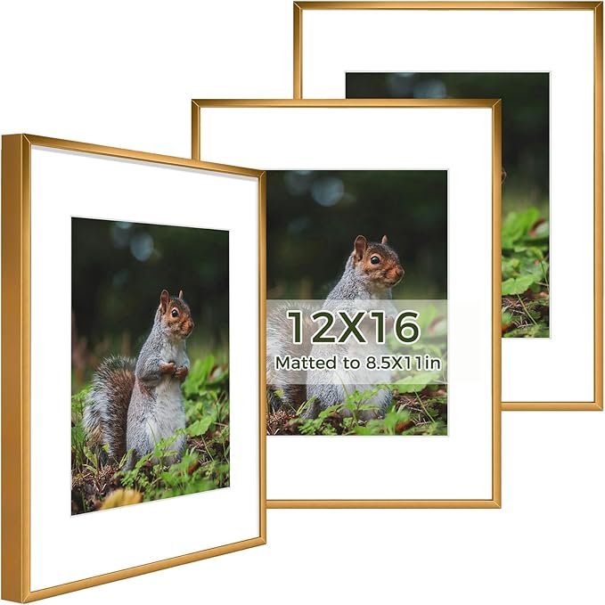 - Package Includes: Three set of 12x16 inch metal picture frames with mat. Simple and elegant design, perfect gallery wall decor