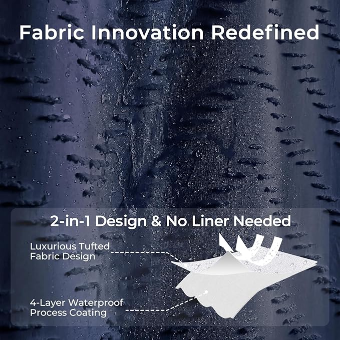 - 【Quality Textured Waterproof Shower Curtain】- This Tufted Shower Curtain Adopted Double layers Fabric,Ultra-textured.Back waterproof TPU fabric which is expertly chosen, touches soft and ccomfortable. Our shower curtains are more durability.This great quality water resistant shower curtain is definitely worth the price, you won't regret it!