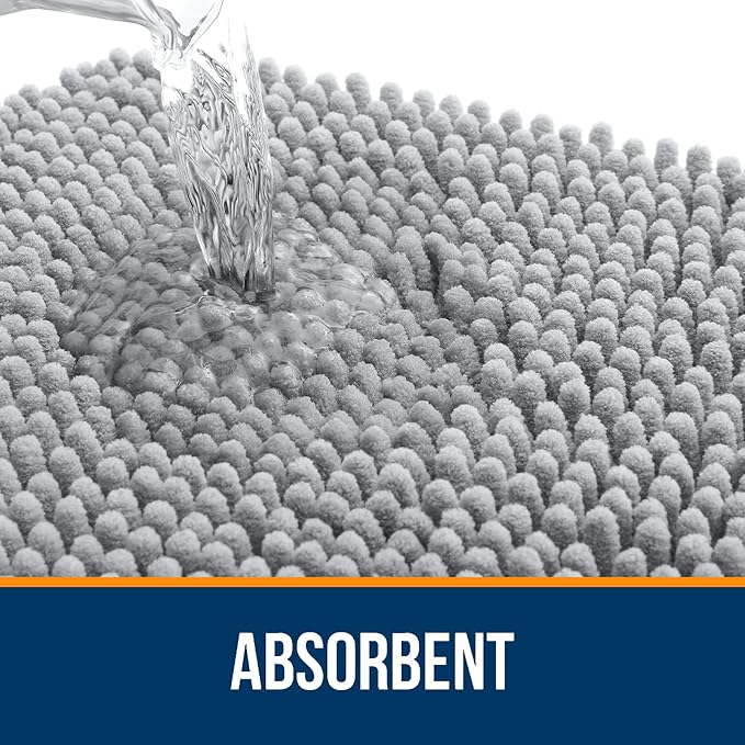 OLANLY Bathroom Rugs 24x16, Extra Soft Absorbent Chenille Bath Rugs, Rubber Backing Quick Dry, Machine Washable Bath Mats for Bathroom Floor, Tub and Shower, Home Decor Accessories, Light Grey