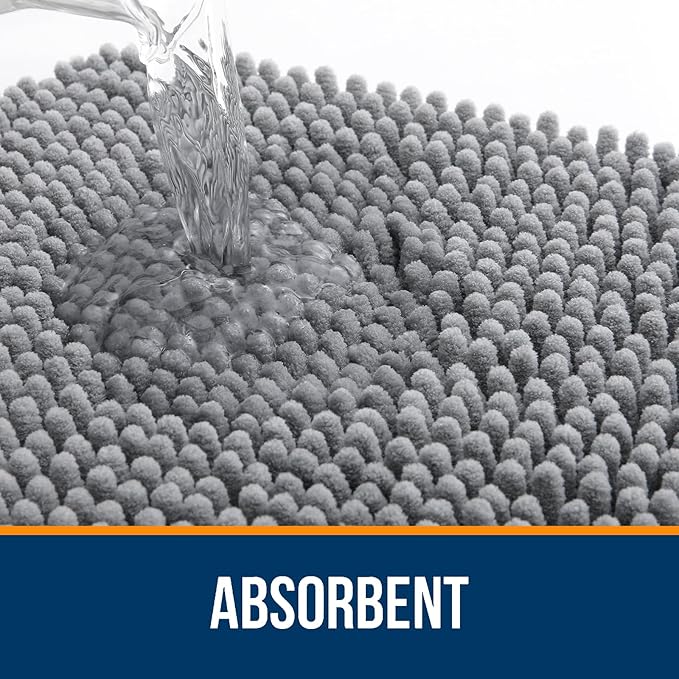 OLANLY Bathroom Rugs 36x24, Extra Soft Absorbent Chenille Bath Rugs, Rubber Backing Quick Dry, Machine Washable Bath Mats for Bathroom Floor, Tub and Shower, Home Decor Accessories, Grey