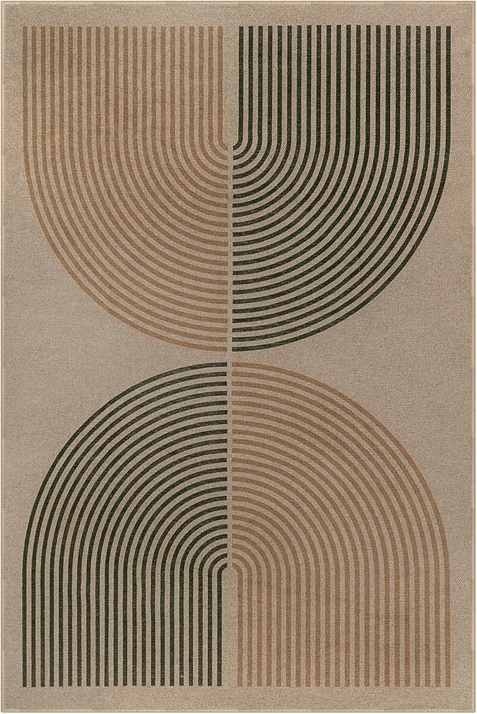 - Modern Rainbow Rug: Its beautiful graphic design combines lines and half circles to create double rainbow textures. Adding contemporary flair to any room, this rug complements a variety of spaces