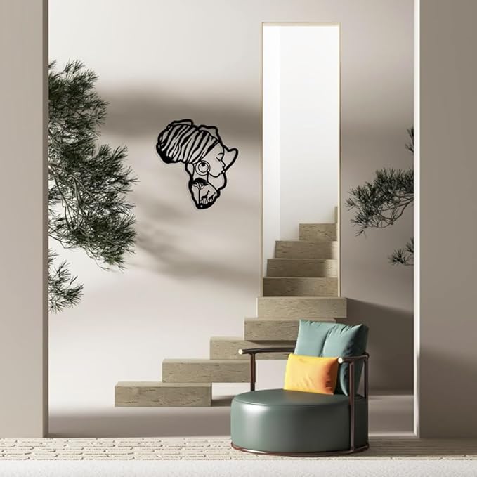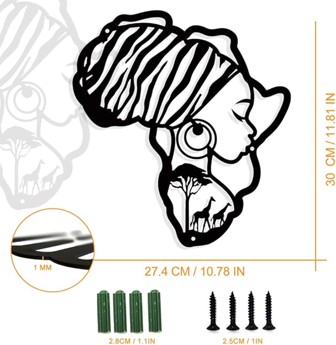NBEADS Africa Map Metal Wall Art Decor, Matte Style Women Wall Hanging Decor Silhouette Wall Art for Home Garden Hotel Office Wall Festival Decoration Gift, 10.79×11.8 Inch
