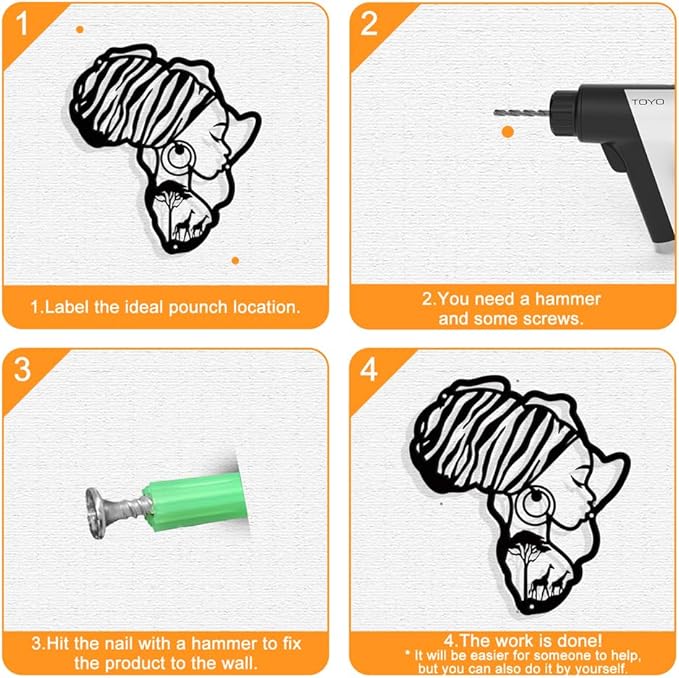 - Easy Installation -- Our metal wall decoration is equipped with screws, all you have to do is punch the holes where we marked with red dots and use nails to pass through the hole and mount it to the wall or the door. You can also use the right size of double-sided adhesive tape to fix it to keep the wall intact.