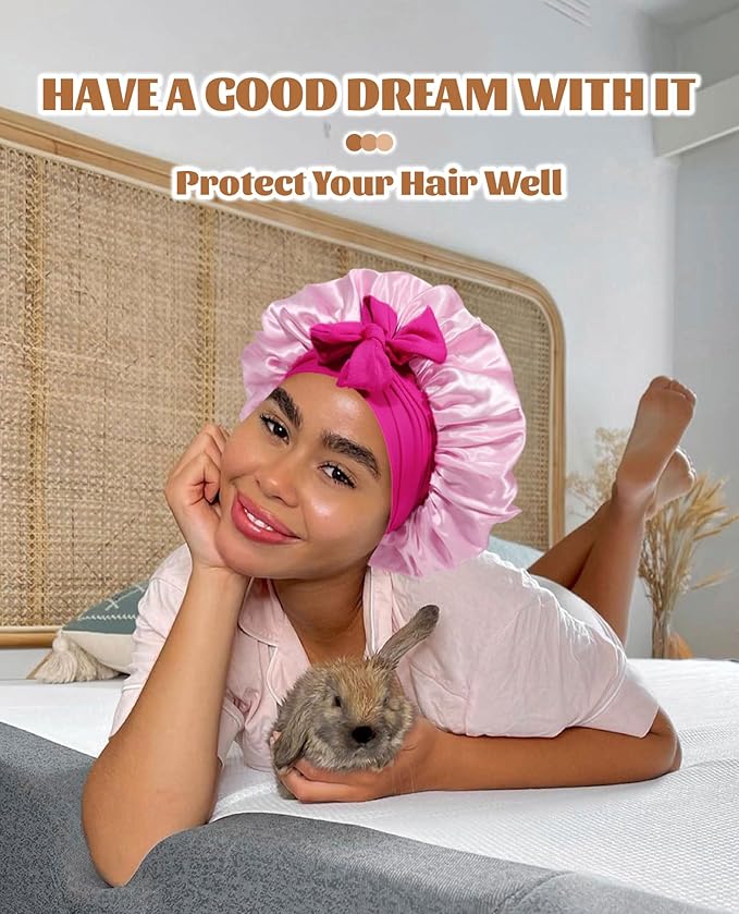 - Satin Bonnet for Sleeping Versatile:Satin hair bonnet is not only suitable for sleeping, you can also use it to wash your face, bathe, cook, do SPA, tie your hair or clean your face while doing makeup, even do housework, do yoga and so on