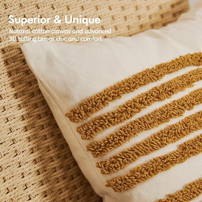 - 【FABRIC AND SIZE】The front of this boho couch pillow cover is made of polyester. Measures 18x18 inches.Exquisite workmanship enables tufting part dense soft and aesthetic.The 2D effect with the tufting technic makes these abstract pillow covers so distinctive.