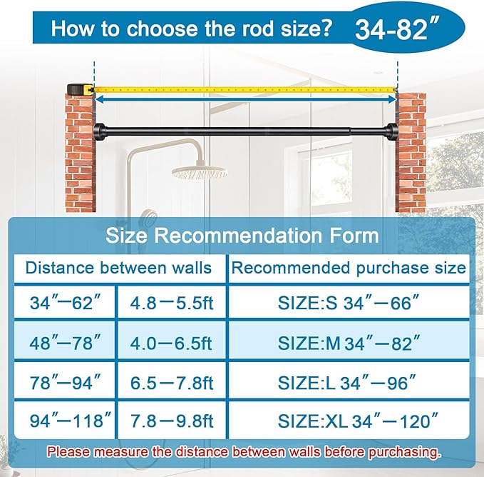 - Versatile Use: Shower curtain rod is suitable for various scenarios such as bathrooms, Kitchens, Living rooms, and Patio. It can be used to hang various items such as heavy duty curtains and shower curtains