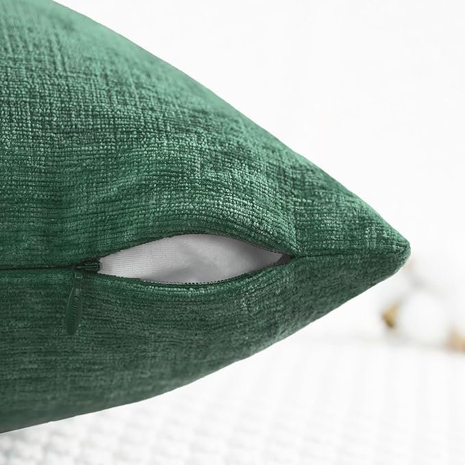 CaliTime Throw Pillow Covers Decorative 24 X 24 Inches Pack of 2 Cozy Chenille Cushion Cases for Couch Sofa Bed Living Room Home Dark Green