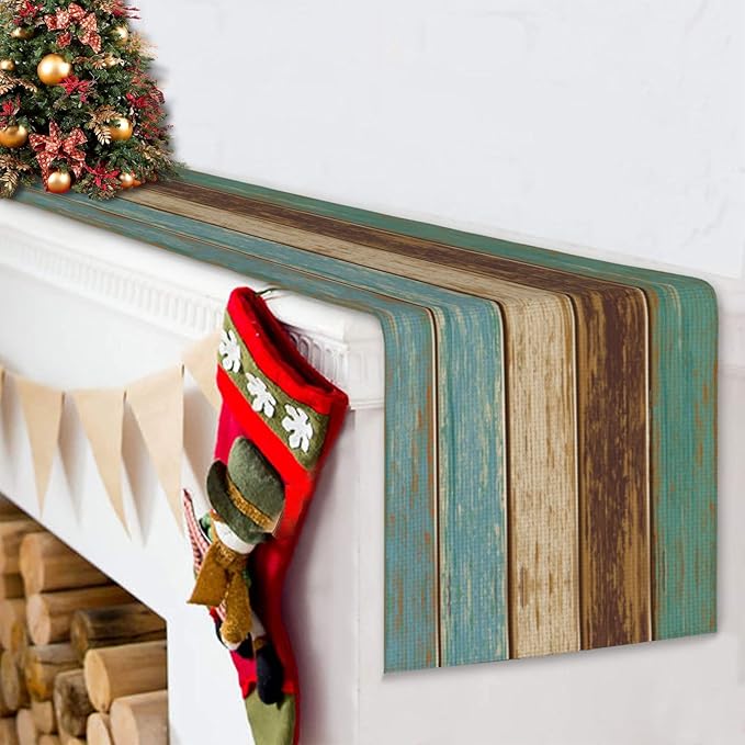 Wood Print Table Runner Seasonal Kitchen Dining Linen Table Decoration for Indoor Outdoor Home Party Dinner 13x72 Inch