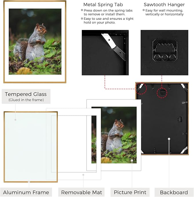 - Easy to Use: Spring Retention Clips& Corner Spring Clips on the backboard are easy for loading photos and hold picture tightly. Sawtooth Hangers are for wall display (Vertically or Horizontally)