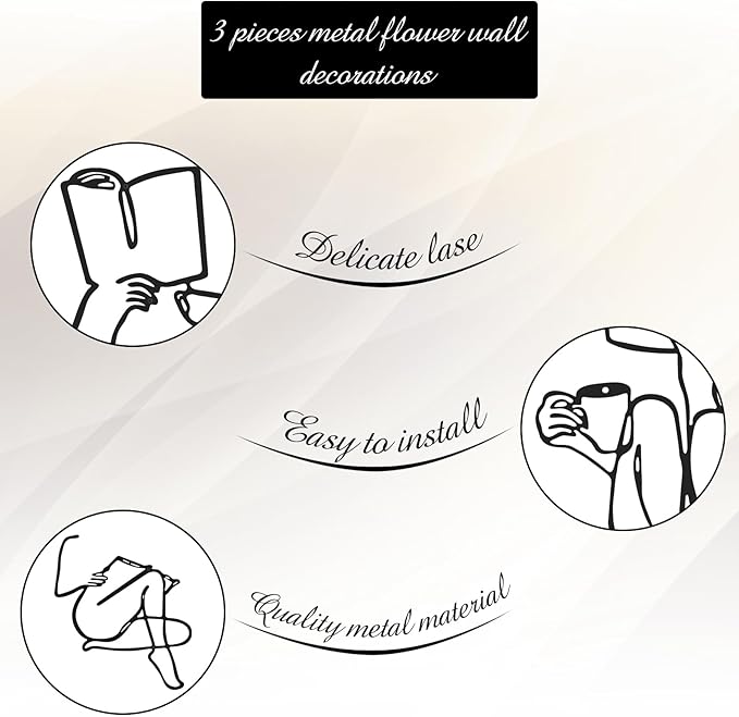 - Package Includes: you will get 3 pieces of abstract women's metal line art decorations in different styles, which are well packed during transportation, and the quantity is enough to meet your home decoration needs, which will make your bedroom, living room or other places full of elegant atmosphere and show your taste