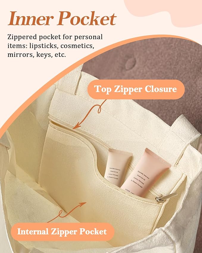 - Zippered Inner Pocket: This canvas cloth totes bag with inner pocket combines practicality and fashion, making it a perfect fit for fashion-conscious and stylish women. Its chic and casual style and vintage design can complement various outfits, making it a versatile choice for your wardrobe. The zippered inner pocket enhances its functionality, allowing you to organize your belongings with ease