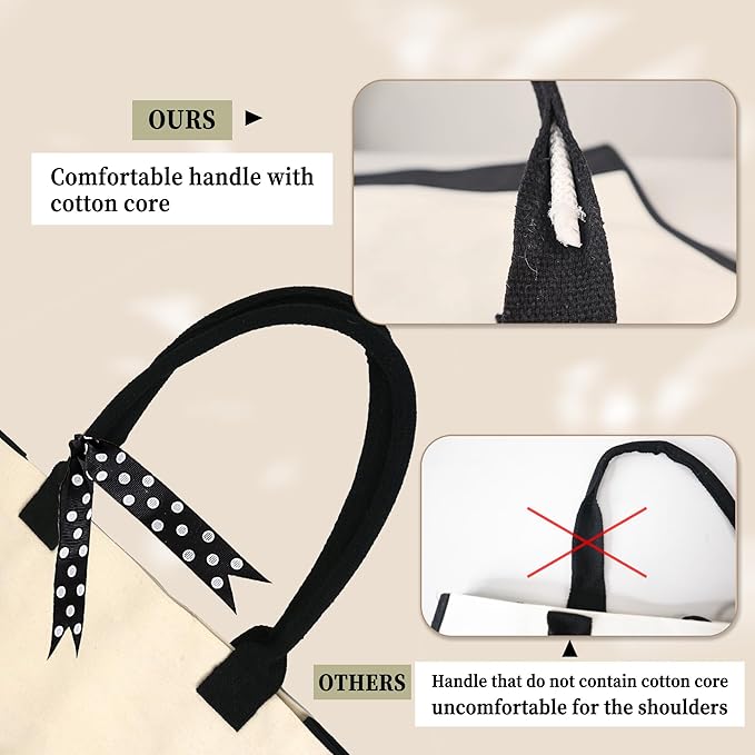 • WASH TIPS: These large tote bags for women have a thick canvas exterior and a damp-proof lining on the inside. Machine washing will damage the lining, so it can only be washed by hand. Do not tumble dry or iron. When there are stains, partial hand washing can keep the shape of the reusable grocery tote unchanged and can be reused for many years without breaking.