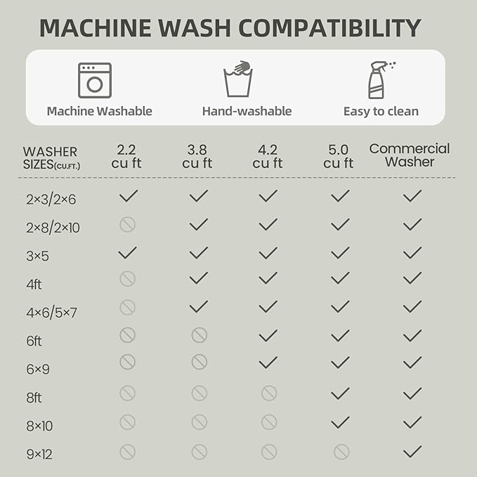 - Machine Washable: The rug is machine washable, machine wash or hand wash are all available. We suggest to wash it in cold water. Vacuum or robot vacuum cleaner are all recommend. You can spot clean the rug with a rag for small stain. No bleach and no high temperature ironing.