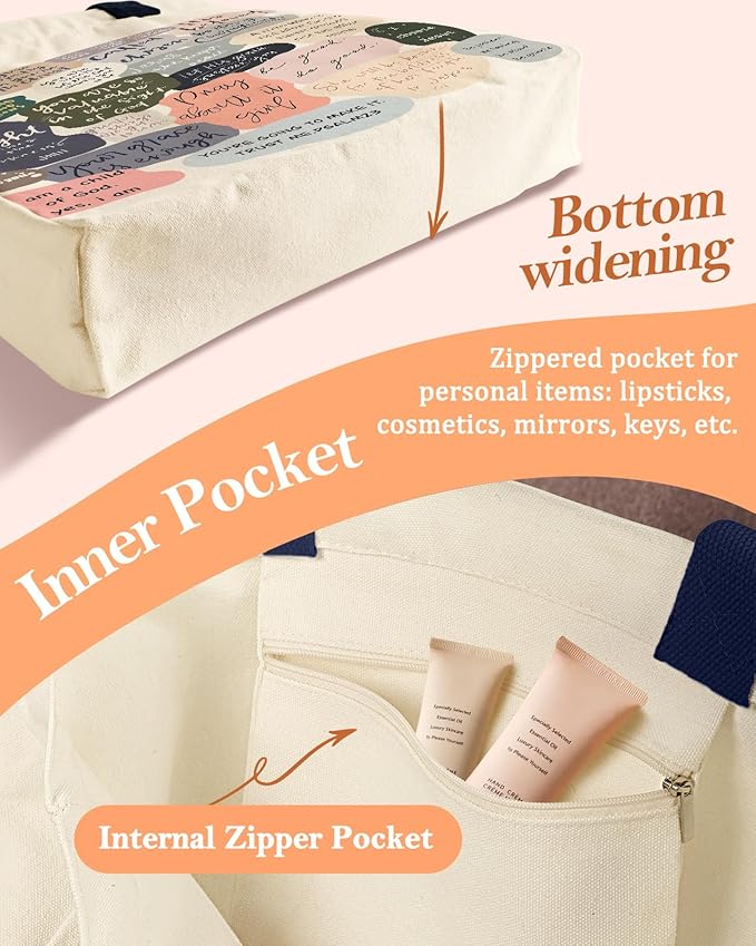 - Unique Pattern Portable Tote Bag with Zipper Inner Pocket Design: This foldable canvas cloth totes bag with a zipper combines practicality and fashion, ideal for stylish women. Its chic and casual style, along with a vintage design, complements various outfits, adding versatility to your wardrobe. The large zipper adds style and functionality, while the zippered inner pocket offers convenient organization.