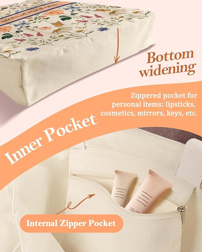 - Unique Pattern Portable Tote Bag with Zipper Inner Pocket Design: This foldable canvas cloth totes bag with a zipper combines practicality and fashion, ideal for stylish women. Its chic and casual style, along with a vintage design, complements various outfits, adding versatility to your wardrobe. The large zipper adds style and functionality, while the zippered inner pocket offers convenient organization.