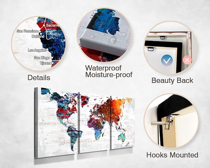 Wall Art for Office Pictures for Living Room Wall Decorations Bedroom Wall Decor for Women Girl Large Map of the World Canvas Art Wall Decor Classroom Decor