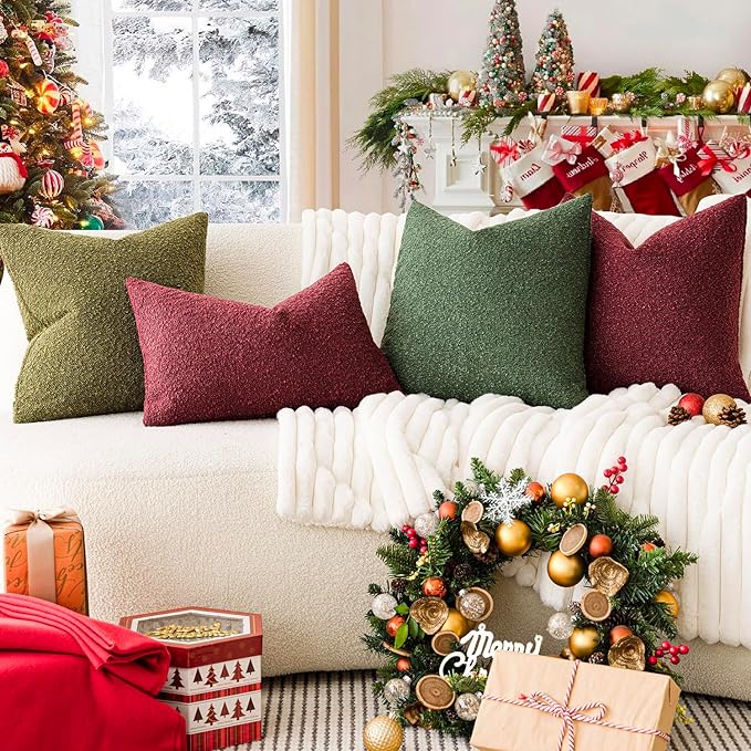 Foindtower Pack of 2, Decorative Textured Boucle Throw Pillow Covers Accent Solid Pillow Cases Cozy Soft Couch Cushion Case for Chair Sofa Bedroom Living Room Home Decor 22 x 22 Inch Hunter Green