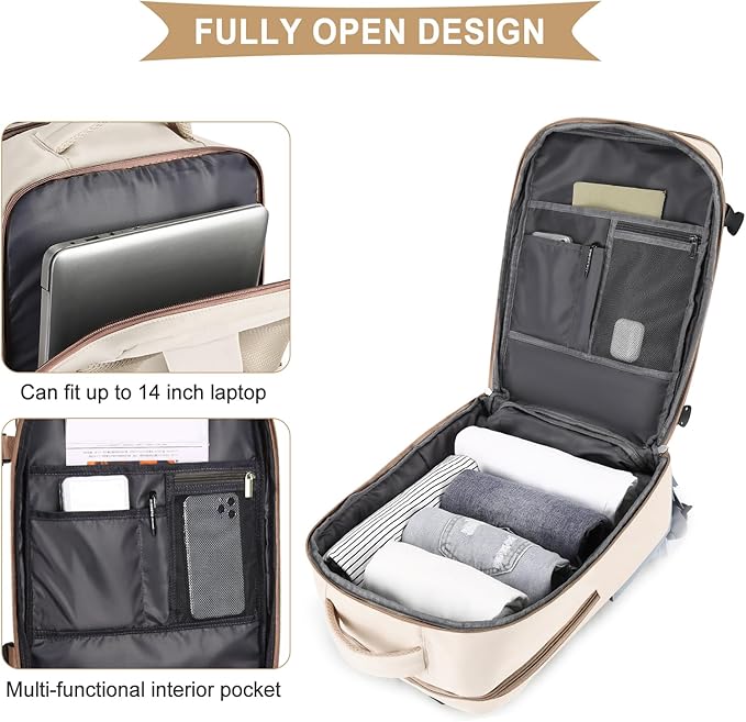 coowoz Travel Backpack For Women Men,Carry On Backpack,Hiking Backpack Outdoor Sports Rucksack Casual Daypack travel essentials(Beige Brown)