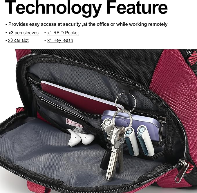 - Effortless Packing & Ample Storage: Packing has never been easier. Five exterior pockets provide quick access, while the spacious main compartment holds up to 5 or 7 days' worth of clothes. Your laptop stays safe in the padded compartment, and thoughtful details like pen sleeves, card slots, a key leash, RFID pocket, and hidden security pocket keep you organized and worry-free