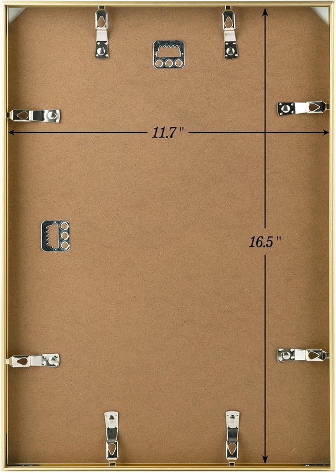 - Picture Frame: Stylish and Practical 16.5x11.7 Inch Photo Frame with Aluminum Moulding Frame and Acrylic Display Panel. (Display Size: 11.2x16; Overall Size: 12.2x17; Fits Picture Size: 11.7x16.5)