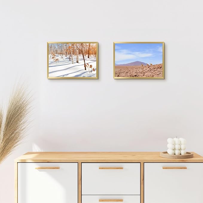 - Material: Brush Gold Aluminum Finish Frame with Plexiglass Front, That Gives a Clear View of Your Pictures, Preserve Your Artwork For a Long Time