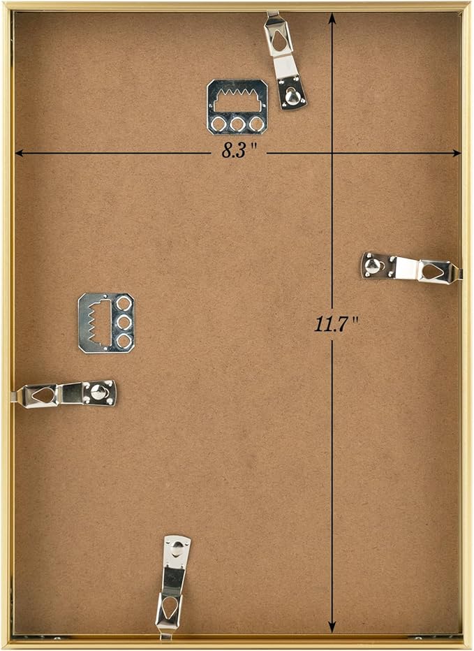 - Picture Frame: Stylish and Practical 11.7x8.3 Inch Photo Frame with Aluminum Moulding Frame and Acrylic Display Panel. (Display Size: 7.8x11.2; Overall Size: 8.8x12.2; Fits Picture Size: 8.3x11.7)