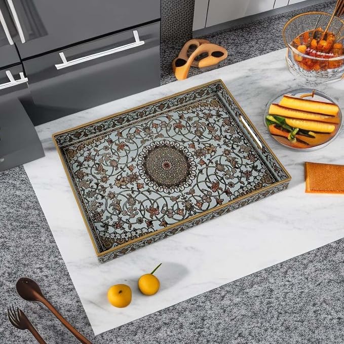 - Multifunctional:Perfect size decorative Serving Tray,you can use it as decorative tray,coffee table tray,ottoman tray,breakfast tray,bathroom vanity tray,Kitchen Countertop Tray,organizer tray etc.
