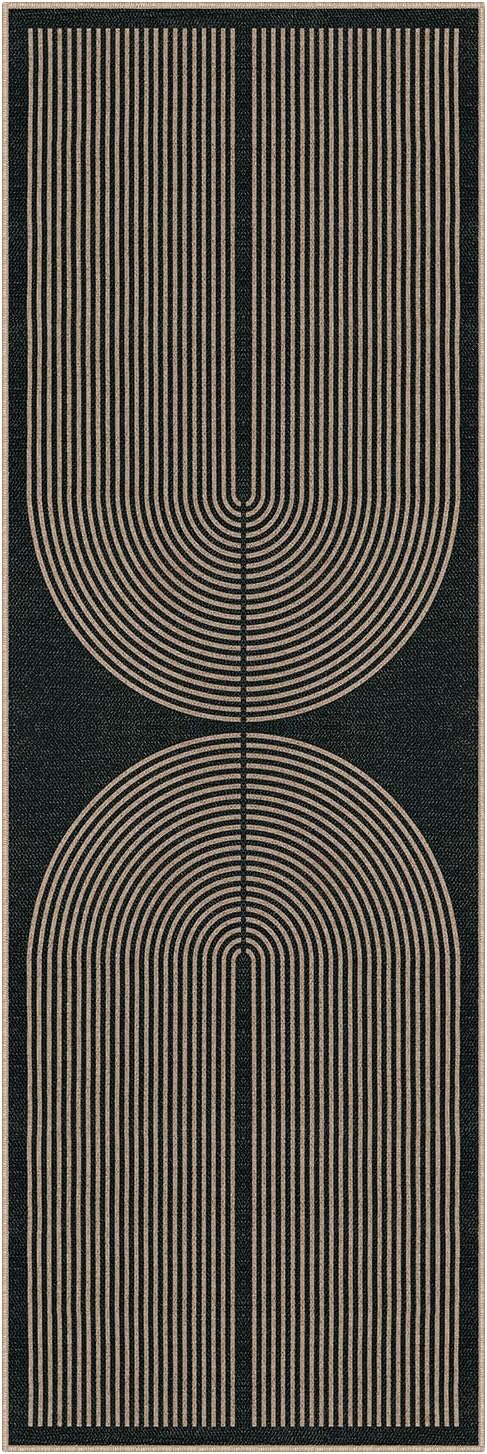 - Modern Rainbow Rug: Its beautiful graphic design combines lines and half circles to create double rainbow textures. Adding contemporary flair to any room, this rug complements a variety of spaces. Printed color and pattern in easy jute, color is charcoal black, not pure black