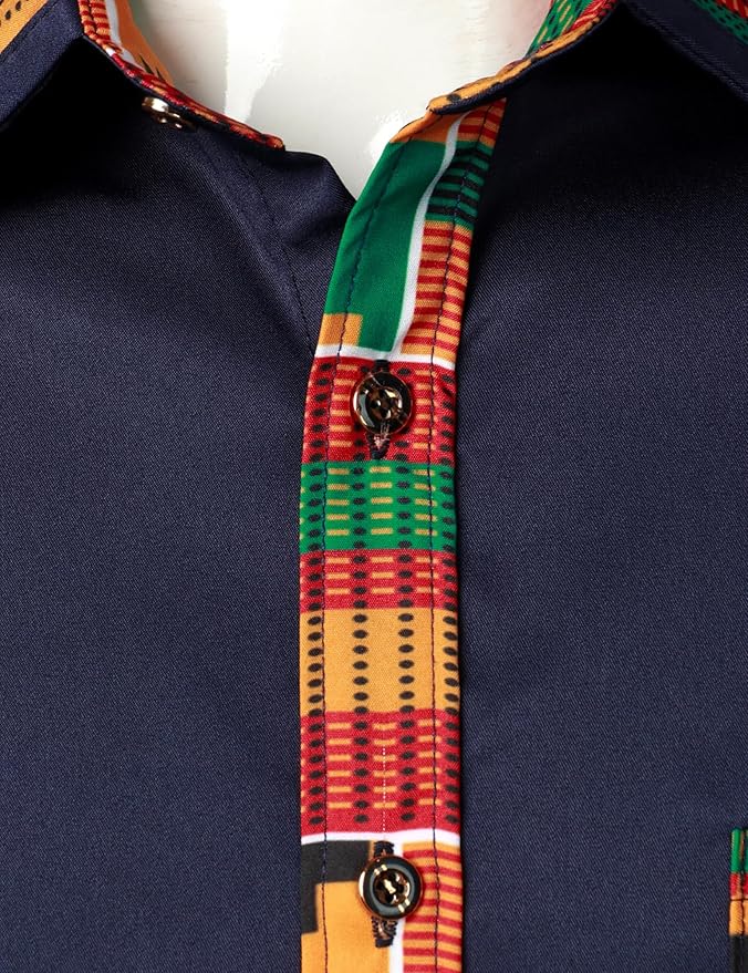 - FABRIC:Stylish African-inspired Dress Shirts.Kente Prints/Lightweight/Breathable/Stretchable fabric ensures more flexibility when moving