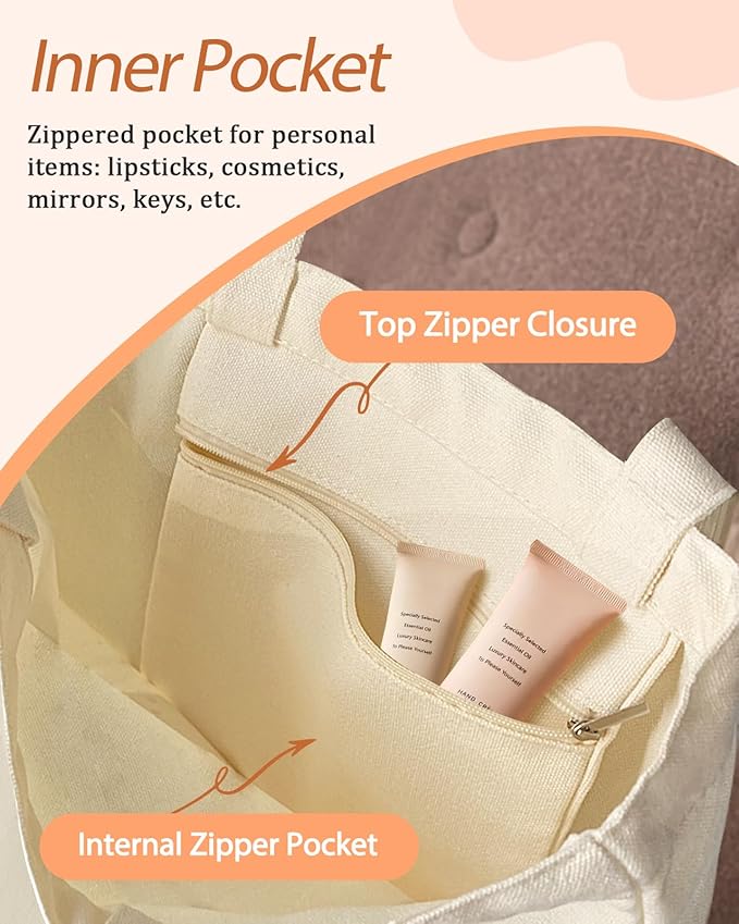 • Zippered Inner Pocket: This canvas cloth totes bag with inner pocket combines practicality and fashion, making it a perfect fit for fashion-conscious and stylish women. Its chic and casual style and vintage design can complement various outfits, making it a versatile choice for your wardrobe. The zippered inner pocket enhances its functionality, allowing you to organize your belongings with ease