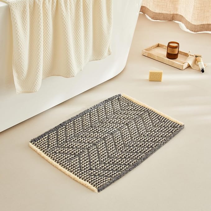 - Upgraded Waffle Desgin: This boho bath mat is power-loomed with upgraded yarns-Integrating decoration and durability. The heavier and thicker threads are applied to make sure the pattern will be more solid and compact- NEVER OUT OF SHAPE!