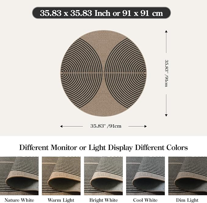 - Functional Circle Rug: Modern round rug lends a sense of simplicity and comfort to your bedside, entryway, kitchen sink, dorm, camping, laundry room, RV, front door or more indoor/outdoor rooms, creating a warm appearance