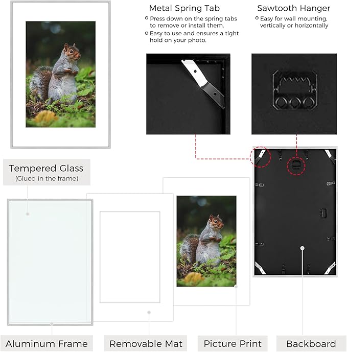 - Easy to Use: Spring Retention Clips& Corner Spring Clips on the backboard are easy for loading photos and hold picture tightly. Sawtooth Hangers are for wall display (Vertically or Horizontally)