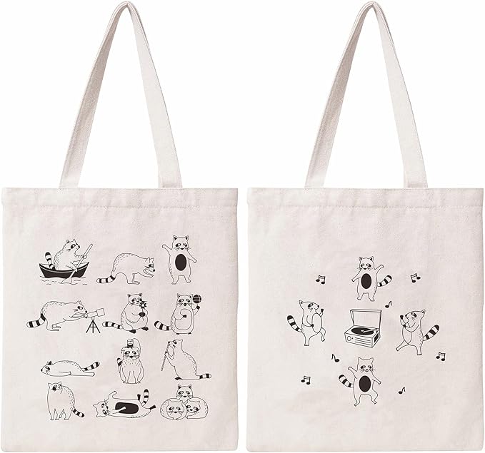 Raccoon Tote Bag Funny Tote Bag Cute Cotton Canvas Bag for Women Gift Reusable Grocery Bag Shopping Beach Shoulder Bag