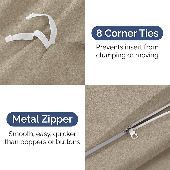 - EASY CARE - ZIPPER CLOSURE & TIES: Designed for hassle-free care, our hotel quality duvet covers and pillow shams stay in excellent condition without the extra effort, making them ideal for busy households. Features 8 ties and a zipper closure to ensure a snug fit and hassle-free maintenance.