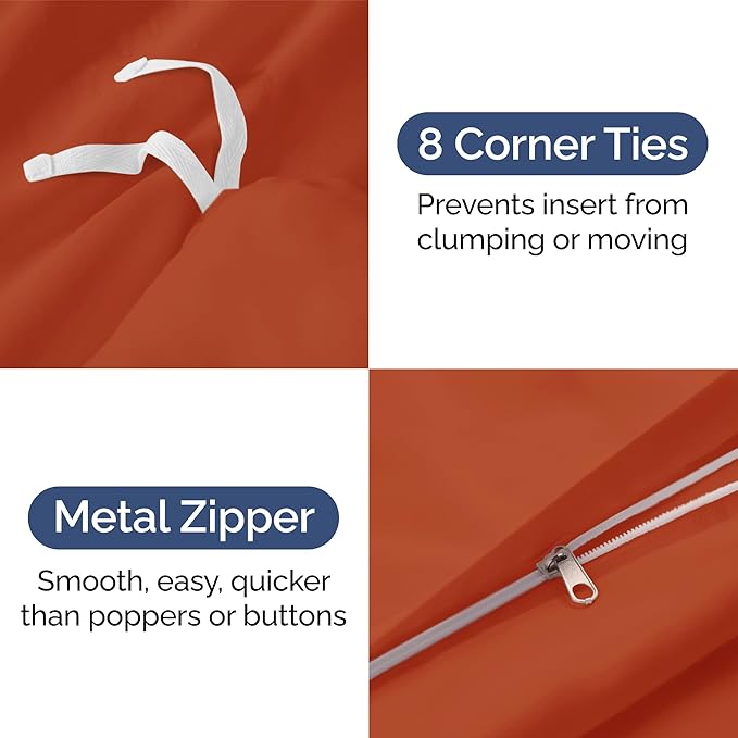 - EASY CARE - ZIPPER CLOSURE & TIES: Designed for hassle-free care, our hotel quality duvet covers and pillow shams stay in excellent condition without the extra effort, making them ideal for busy households. Features 8 ties and a zipper closure to ensure a snug fit and hassle-free maintenance.
