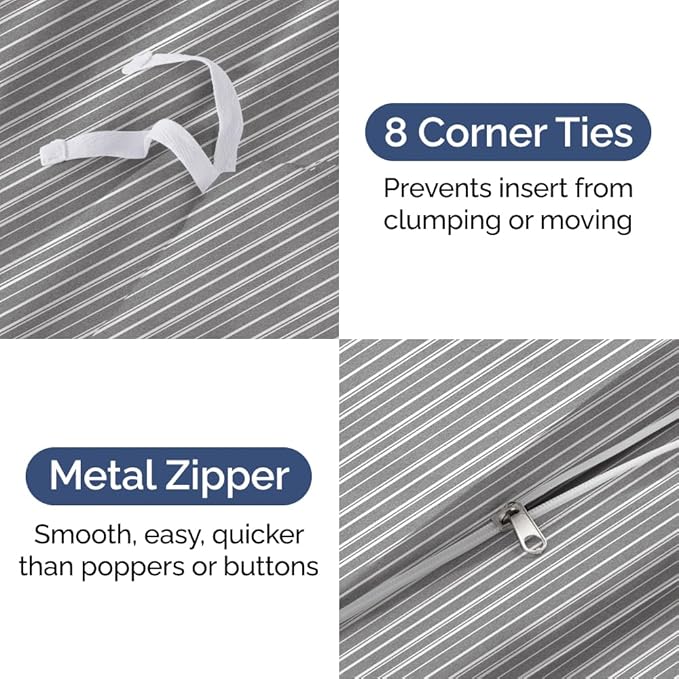 - EASY CARE - ZIPPER CLOSURE & TIES: Designed for hassle-free care, our hotel quality duvet covers and pillow shams stay in excellent condition without the extra effort, making them ideal for busy households. Features 8 ties and a zipper closure to ensure a snug fit and hassle-free maintenance.