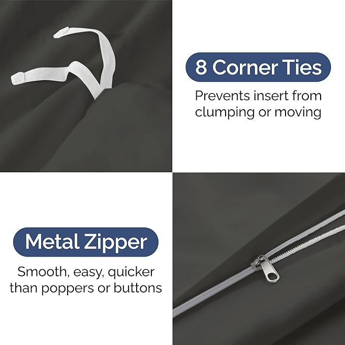 - EASY CARE - ZIPPER CLOSURE & TIES: Designed for hassle-free care, our hotel quality duvet covers and pillow shams stay in excellent condition without the extra effort, making them ideal for busy households. Features 8 ties and a zipper closure to ensure a snug fit and hassle-free maintenance.