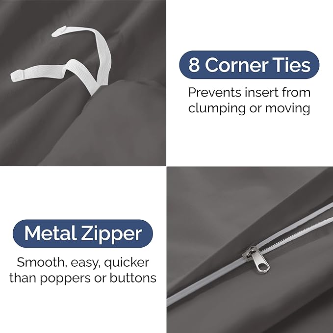 - EASY CARE - ZIPPER CLOSURE & TIES: Designed for hassle-free care, our hotel quality duvet covers and pillow shams stay in excellent condition without the extra effort, making them ideal for busy households. Features 8 ties and a zipper closure to ensure a snug fit and hassle-free maintenance.