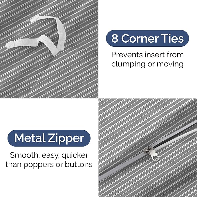 - EASY CARE - ZIPPER CLOSURE & TIES: Designed for hassle-free care, our hotel quality duvet covers and pillow shams stay in excellent condition without the extra effort, making them ideal for busy households. Features 8 ties and a zipper closure to ensure a snug fit and hassle-free maintenance.