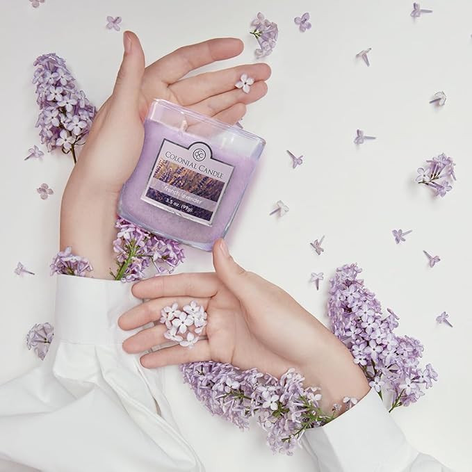 Colonial Candle French Lavender Scented Jar Candle, 2 Wick, 3.5 oz, Mottled Wax Candle