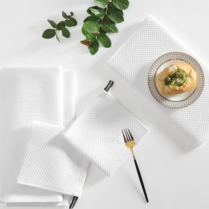 - COTTON DISH CLOTHS: 100% cotton waffle weave dishcloths that feel soft and comfortable. Unique honeycombs design make it have durability. And it softens with each wash, so these dish towels won't scratch your delicate cookware, plates and pans.
