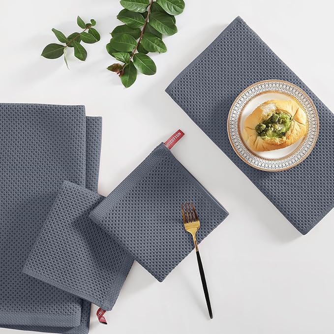 Homaxy 100% Cotton Kitchen Towels and Dishcloths Set, 12 x 12 Inches and 13 x 28 Inches, Set of 12 Bulk Kitchen Towels Set, Ultra Soft Absorbent Dish Cloths for Washing Dishes, Dark Grey