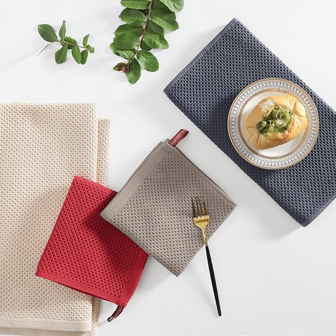 - VALUE PACK: The set includes 6-pack cotton dishcloths and 6-pack cotton dish towels, available in a variety of colors to coordinate with any kitchen décor. Measures 12 in x 12 in and 13 in x 28 in.